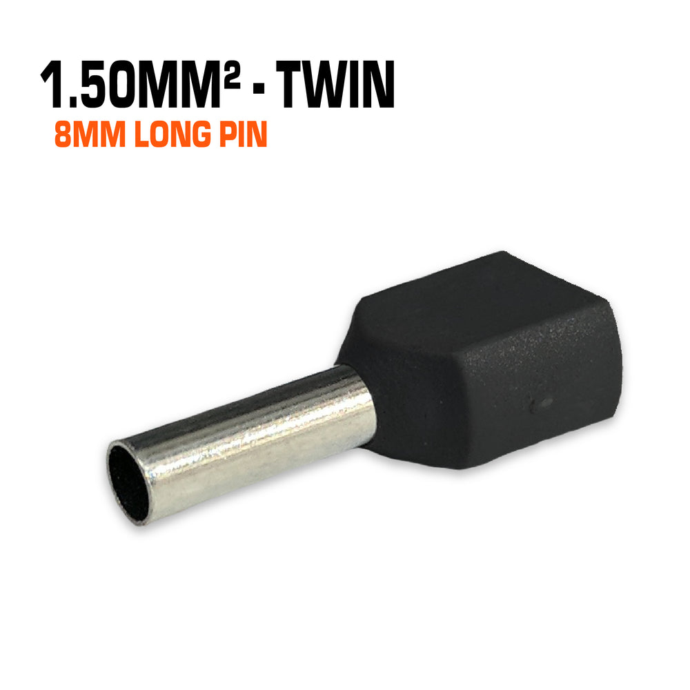 1.5mm² Bootlace Short Black 8mm Ferrule TWIN 100pk
