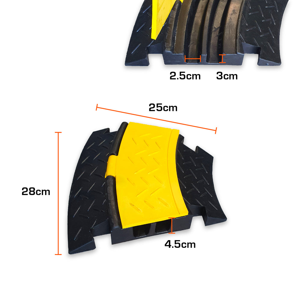 Engineered to withstand heavy vehicle and foot traffic, the cable guards offer reliable pedestrian protection in busy environments. With minimal effort, you can connect your desired cable route, ensuring seamless coverage. Each 30° section requires three pieces to form a full 90° turn.