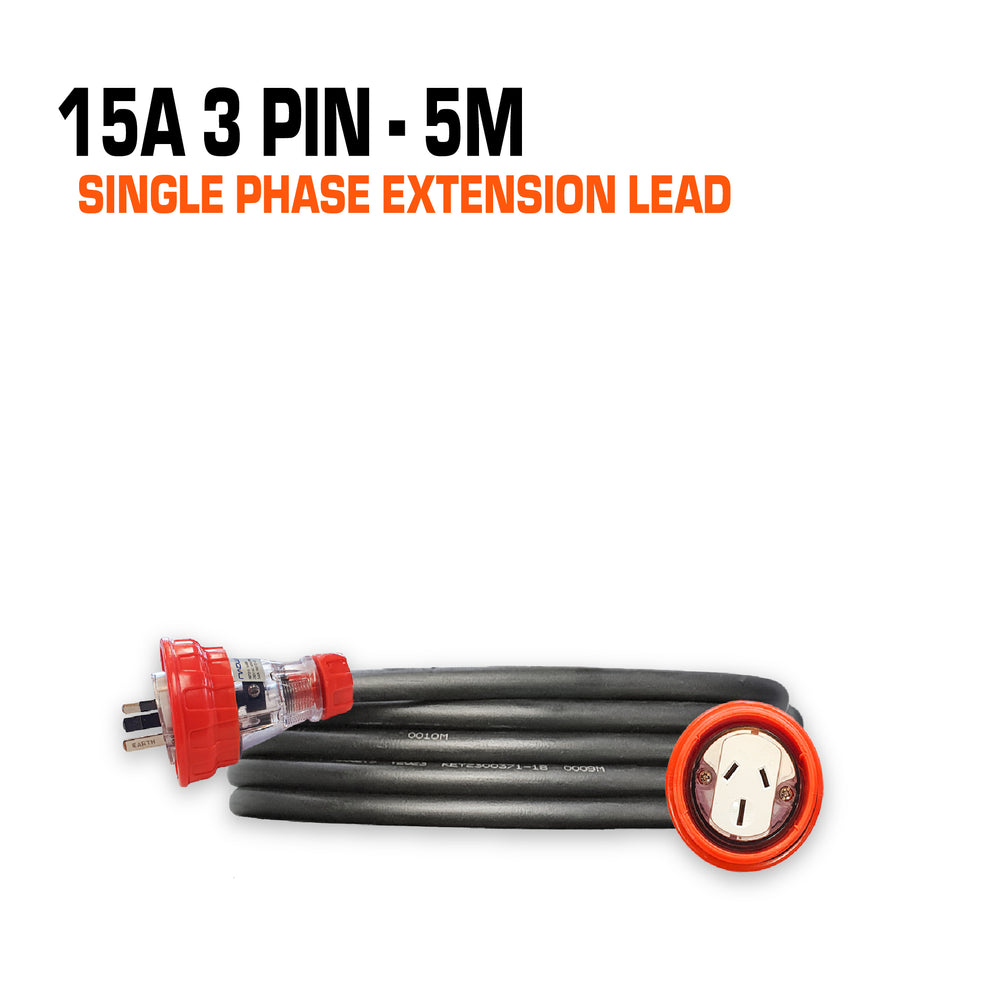 15 Amp Single Phase Extension Lead 3 Flat Pin - 5M