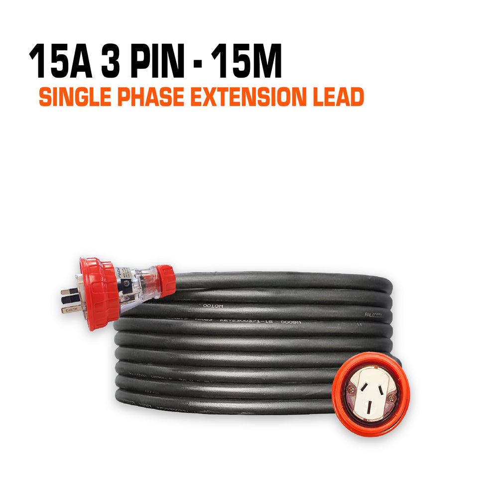 15 Amp Single Phase Extension Lead 3 Flat Pin - 15M
