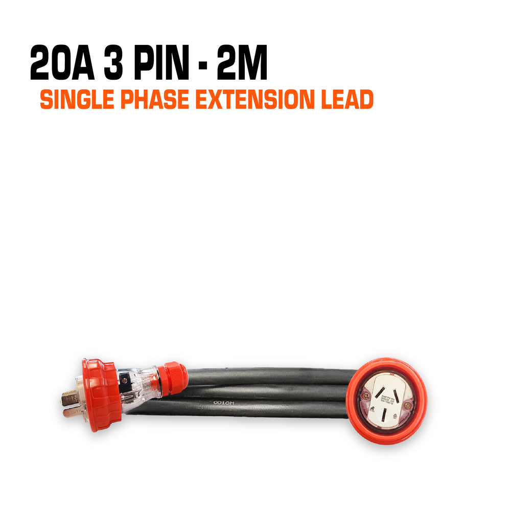 20 Amp Single Phase Extension Lead 3 Flat Pin - 2M