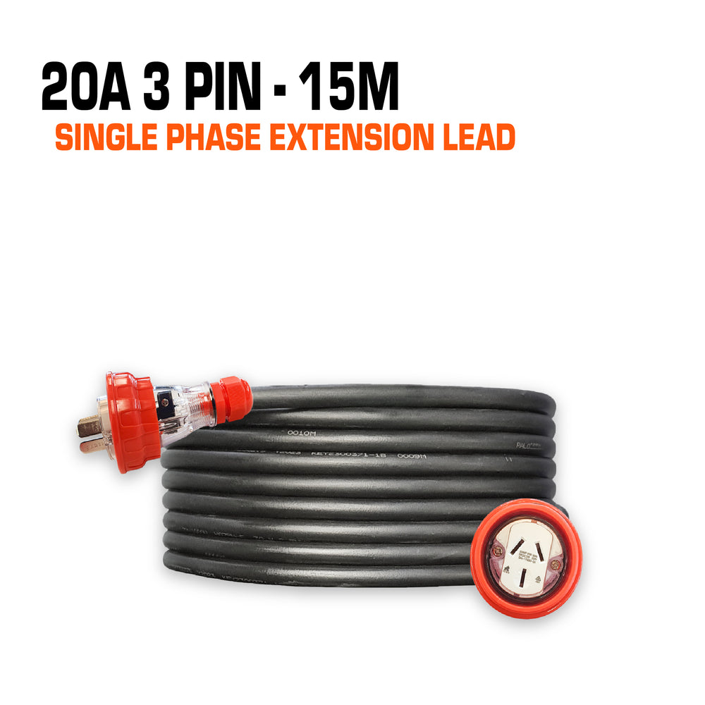 20 Amp Single Phase Extension Lead 3 Flat Pin - 15M