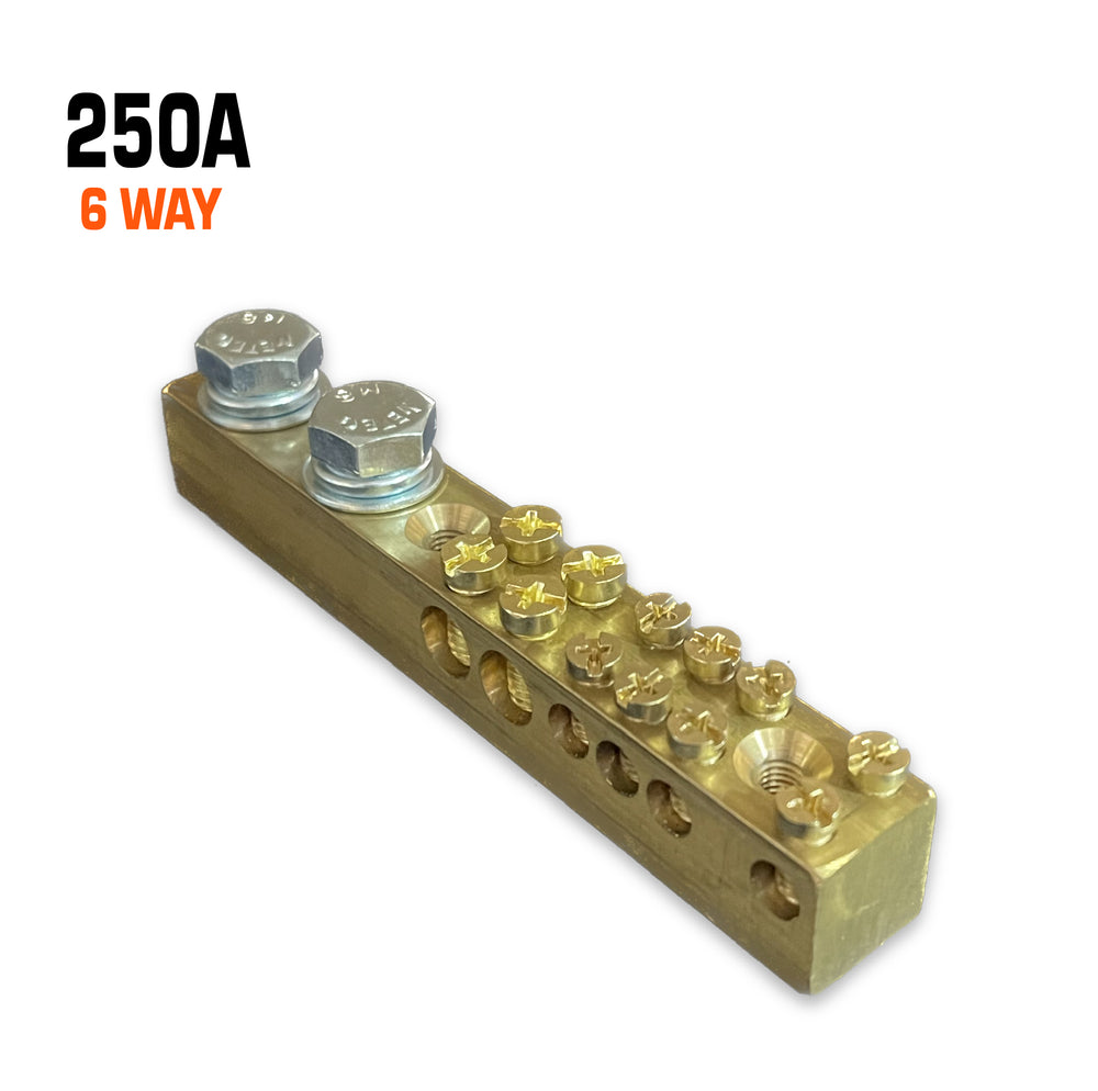 Designed to handle up to 250A, this versatile 6 way bar effortlessly accommodates multiple neutral and earth connections in one sleek unit.