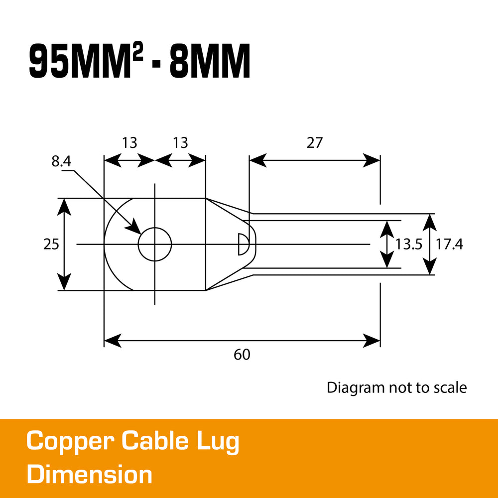 Copper Cable Lug - 95mm² Lug 8mm Hole